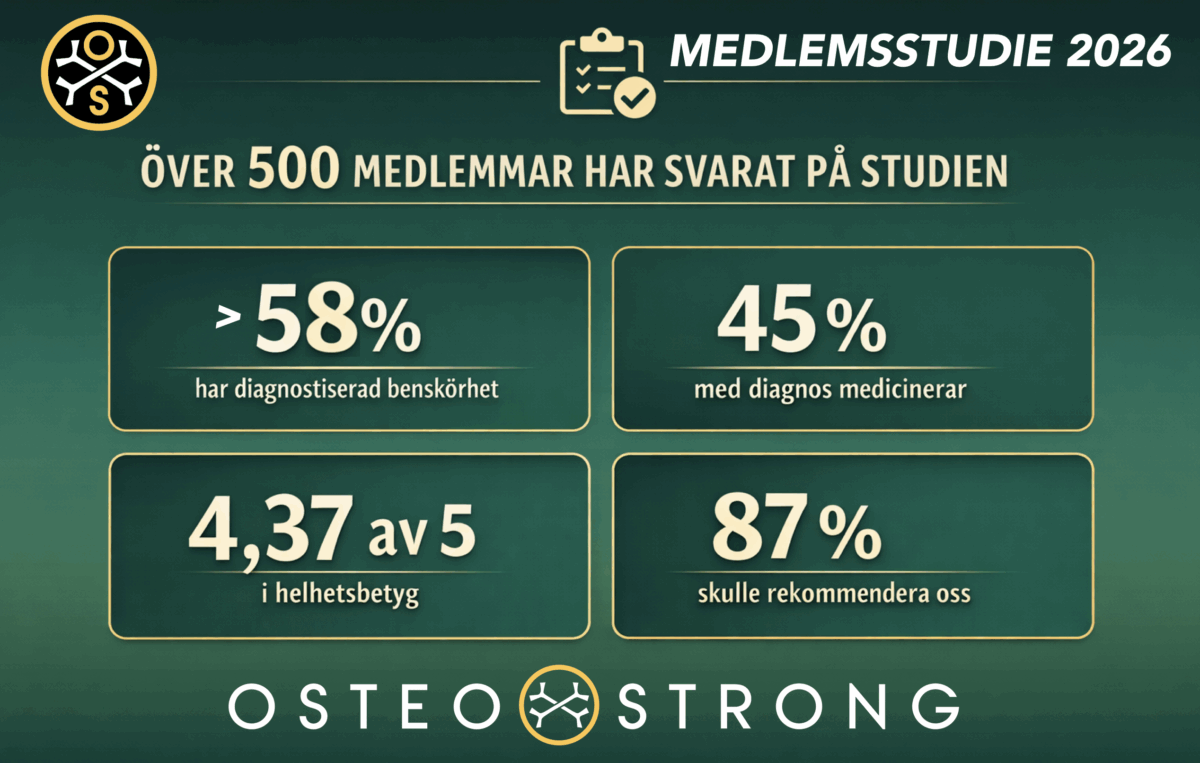 👉 Över hälften av medlemmarna (drygt 58%) uppger att de har diagnostiserad benskörhet (osteoporos)